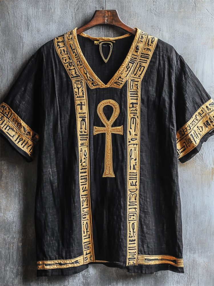 Ankh Ancient Egyptian Embroidered Linen Shirt