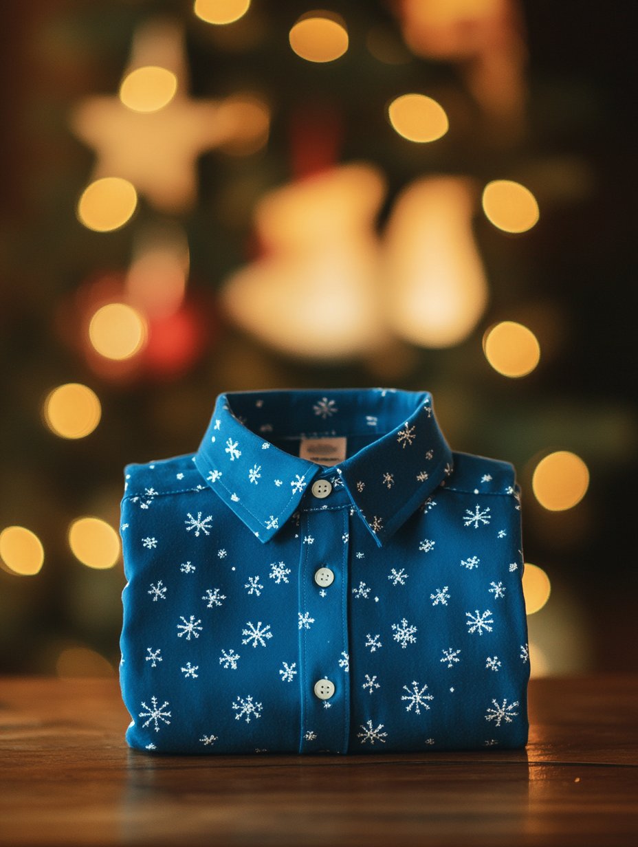 Men's Business Retro Christmas Evergreen Pine Snowflake Santa Claus Print Long Sleeve Shirt