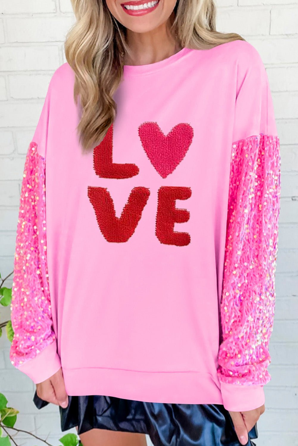 Women Clothing Valentine Day Sequined Sleeves All Match Top Sweet Long Sleeve Sweatshirt for Women