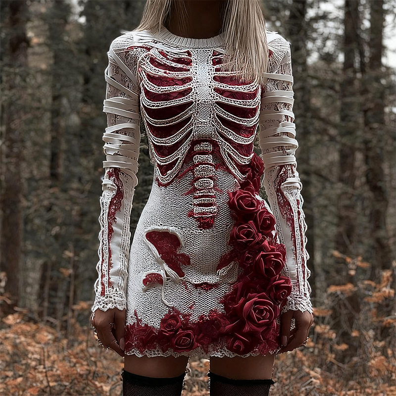 Bloody Roses Skeleton Art Bandages Knit Sweater Dress