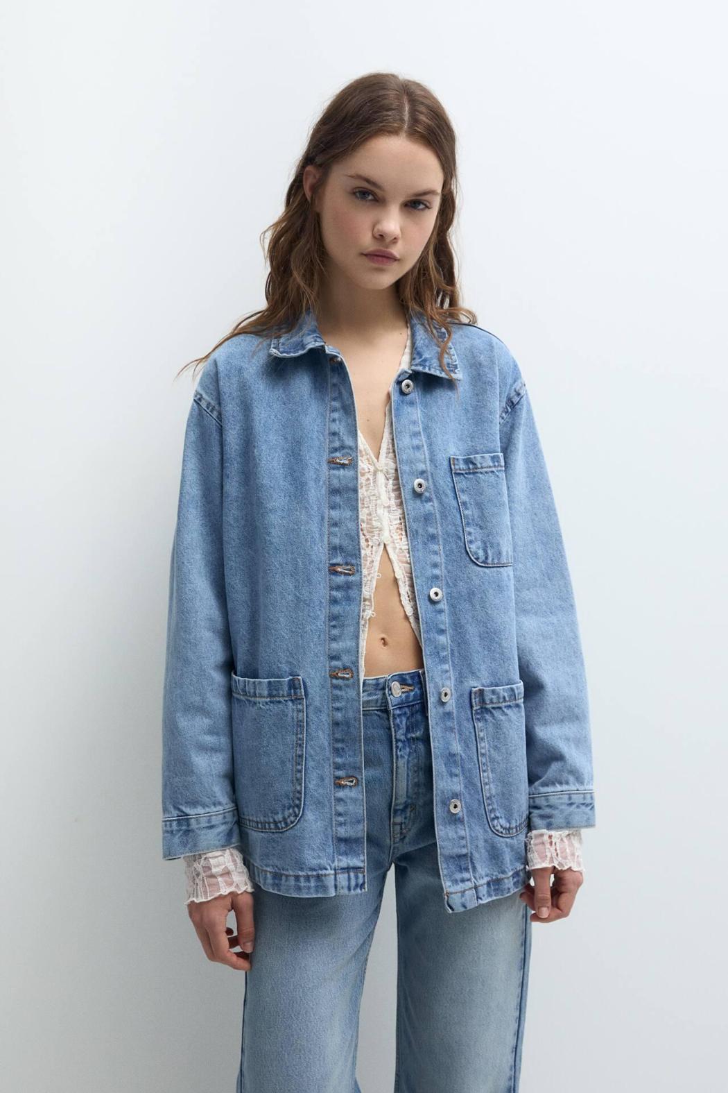 Denim | Women Denim Worker Jacket With Multiple Pockets Medium Blue