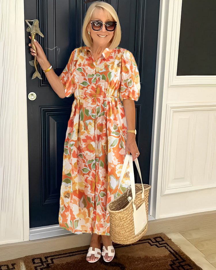 Printed Belt Shirt Tunic Midi Dress
