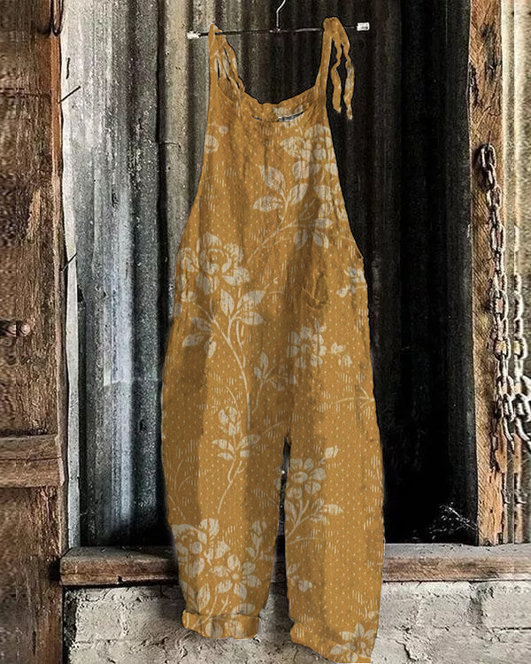 Retro Floral Totem Print Casual Loose Jumpsuit