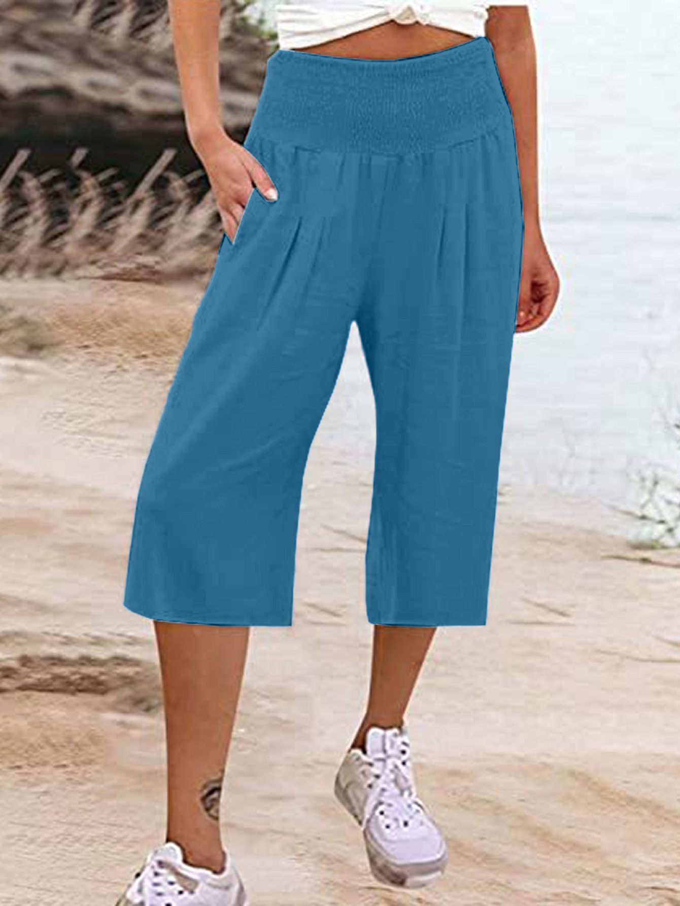 Solid Color Comfortable Cotton and Linen Casual Wide-leg Cropped Pants