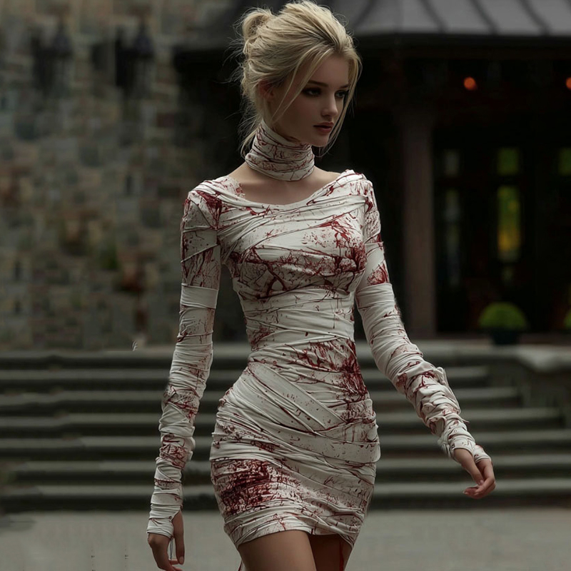 Vintage Halloween Bloody Crew Neck Midi Dress