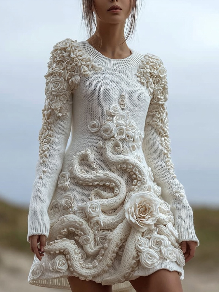 Vintage Roses Tentacles Inspired Cozy Sweater Dress