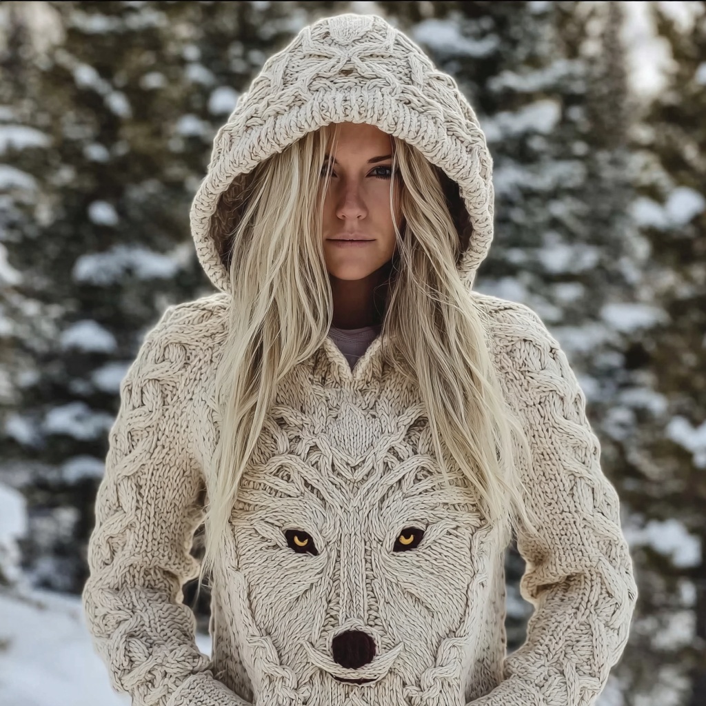 Vintage Viking Wolf Inspired Celtic Chunky Hooded Sweater
