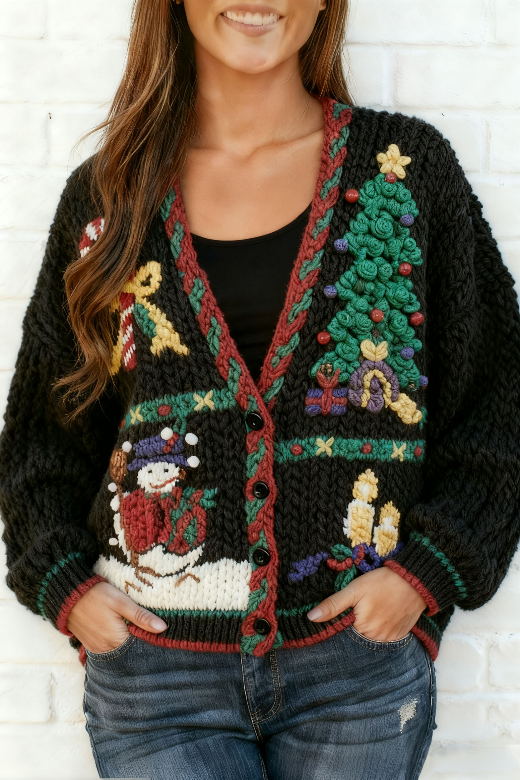 Women’s V-Neck Christmas Sweater-1013