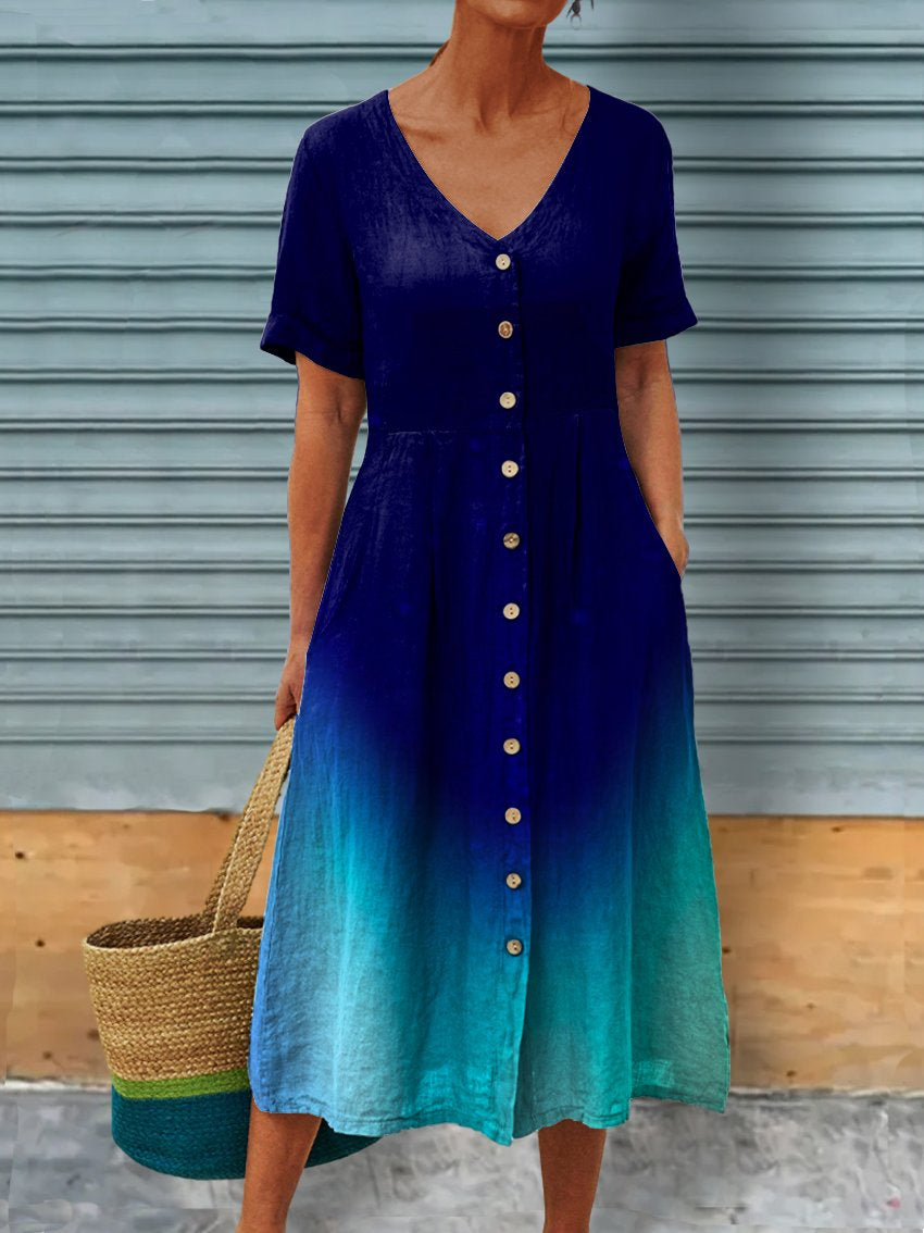 Women's Artistic Gradient Linen Pocket Tunic Dress