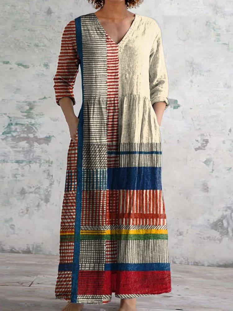 Women's Vintage Art Line Pattern Cotton And Linen Dress