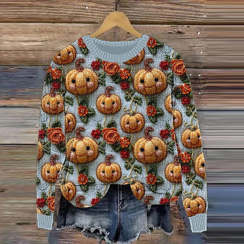 Women's Vintage Halloween Pumpkin Art Cozy Sweater
