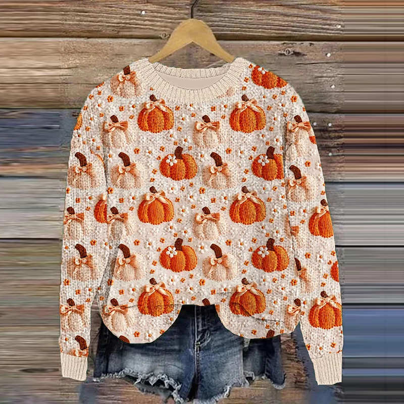 Women's Vintage Halloween Pumpkin Pattern Cozy Sweater