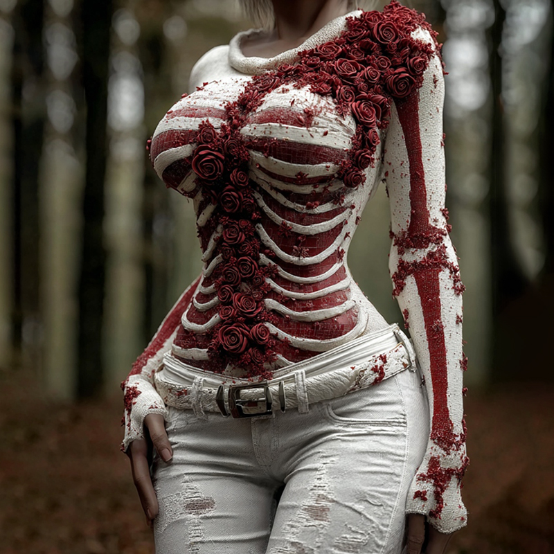 Women's Vintage Skeleton & Rose Art Cozy Sweater