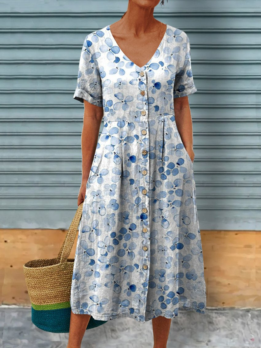 Women's Watercolor Petals Linen Pocket Tunic Dress